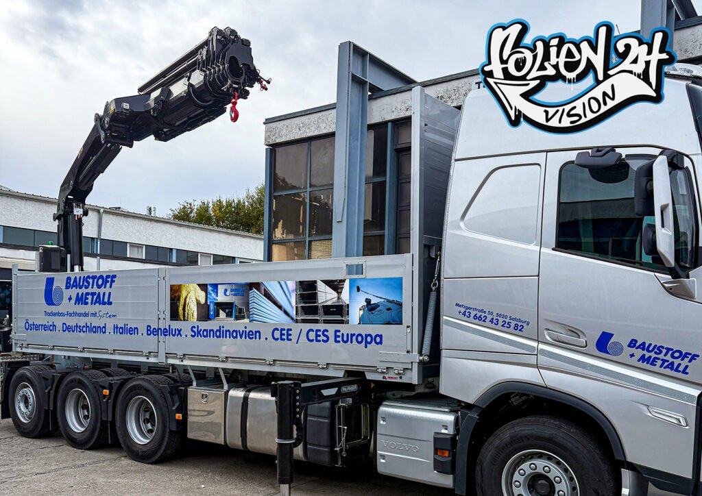 Branding für schweres Gerät. Spezialfolierungen für LKW-Flotten, Planen und Baustellenfahrzeuge. Extrem belastbar und wind- und wetterfest.